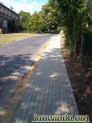 Część chodnika została już wymieniona na wysokości budynku Ochotniczej Straży Pożarnej do starej kamienicy, która kiedyś należała do pałacu.