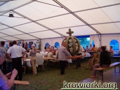 W niedzielę o 11.00 spod OSP w Krowiarkach wyruszył barwny korowód w stronę „Zielonego Centrum”. To właśnie tam w pawilonie została odprawiona Msza Święta przez księdza proboszcza Piotra Popandę. Na Mszy był obecny poseł Andrzej Markowiak, wójt gminy – Andrzej Wawrzynek oraz sołtys Krowiarek – Zdzisław Kozub. Po nabożeństwie nastąpiło przekazanie chleba dożynkowego.