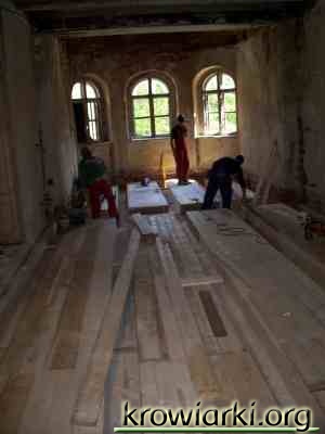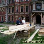 Prac przy pałacu ciąg dalszy Prace w pałacu idą w zawrotnym tempie. Za niedługo pojawią się nowe stropy w miejscach gdzie ich brakowało.