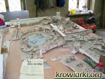 Prac przy pałacu ciąg dalszy Obecnie w pałacu są wylewane nowe stropy w miejsce brakujących. Drewniane belki zastąpią betonowe z metalowym zbrojeniem. Sztukatorzy po ukończeniu uzupełniania brakujących elementów w mauzoleum zajmują się rekonstrukcją zawalonych lub uszkodzonych sufitów. Część sufitów została ściągnięta ze swoją sztukaterią, która będzie uzupełniana i na nowo zawiśnie w odnowionych wnętrzach. Sztukatorzy starają się jak najlepiej rekonstruować każdy uszkodzony element o czym świadczą elementy które wykonali do mauzoleum. Kopuła mauzoleum jest już gotowa pod obicie jej miedzianą blachą a na zewnętrznej elewacji pojawi się nowy tynk.
