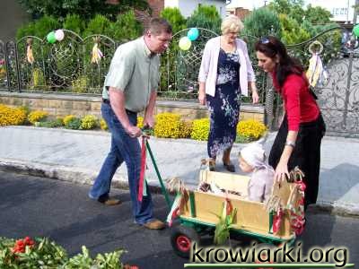 Starostą w tym roku był Pan Krystian Bolik, który wraz z żoną posiada gospodarstwo wraz z 17 ha pola, na którym uprawia zboża oraz hoduje trzodę chlewną. Starościną natomiast Pani Małgorzata Fiegler, która wraz z mężem i synem gospodarzy na 17 ha, na których uprawiają kukurydzę i ziemniaki oraz hodują krowy. Starostów wiózł na blisko 100-letnim wozie Pan Józef Kapłanek.