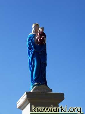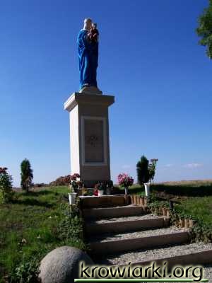 Pracownicy remontujący pałac w Krowiarkach z własnej inicjatywy podjęli się odnowienia figury Matki Boskiej. Jak poinformował nas jeden z ekipy budowlanej na pomysł odnowienia „Panienki” wpadł mieszkaniec Krowiarek. Korzystając z materiałów firmy odnawiającej pałac robotnicy po godzinach pracy udawali się odnawiać figurę. Efekt ich pracy można zobaczyć w galerii.