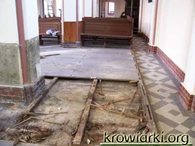 W kościele w Krowiarkach trwają dalsze prace remontowe przed zbliżającym się dużymi krokami jubileuszem 100-lecia. Jak już wspominaliśmy po pomalowaniu kościoła przyszła kolej na renowację ławek a także ołtarza głównego. Te ławki, które zostały już oczyszczone z farby wróciły na swoje miejsce. Teraz nadszedł czas na renowację drugiej strony. Ławki są czyszczone w specjalnym kwasie, który powoduje usunięcie farby i wygląd naturalnego drzewa. Został także odnowiony ołtarz główny i stacje drogi krzyżowej.
