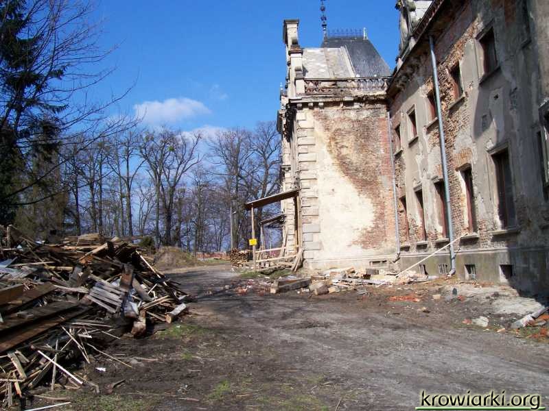 Wieża została rozebrana aż do części murowanej. Niepokoi nas nie zabezpieczona część pałacu narażona na opady.