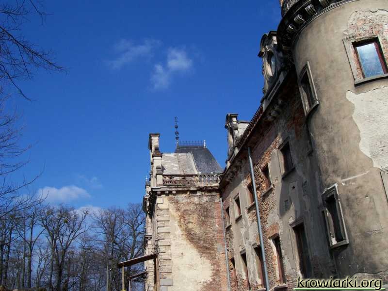 Wieża została rozebrana aż do części murowanej. Pozostała po niej ogromna dziura w dachu i widoczne poddasze. Obecnie nie zabezpieczone przed opadami deszczu czeka na remont dachu. W pałacu zaś w sali balowej i mauretańskiej zostały postawione rusztowania i najprawdopodobniej niebawem odbędą się prace odnawiające sztukaterię