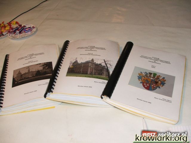 Główna kwatera pałacowych budowniczych mieści się w budynku obok. Na ścianie w biurze wisi drzewo genealogiczne rodziny Donnersmarcków, na szafie dwie płaskorzeźby przedstawiające twarze satyrów, a na stole 3 grube tomiska dokumentacji, dotyczącej pałacu oraz jego dziejów pod nazwą Studium historyczno – konserwatorskie założenia pałacowo parkowego w Krowiarkach. Tom pierwszy – tekst, tom drugi – archiwum i kartografia, tom trzeci – dokumentacja fotograficzna. – Prawie dwa lata pracowały nad tym dwie osoby – wyjaśnia Młyńczyk.