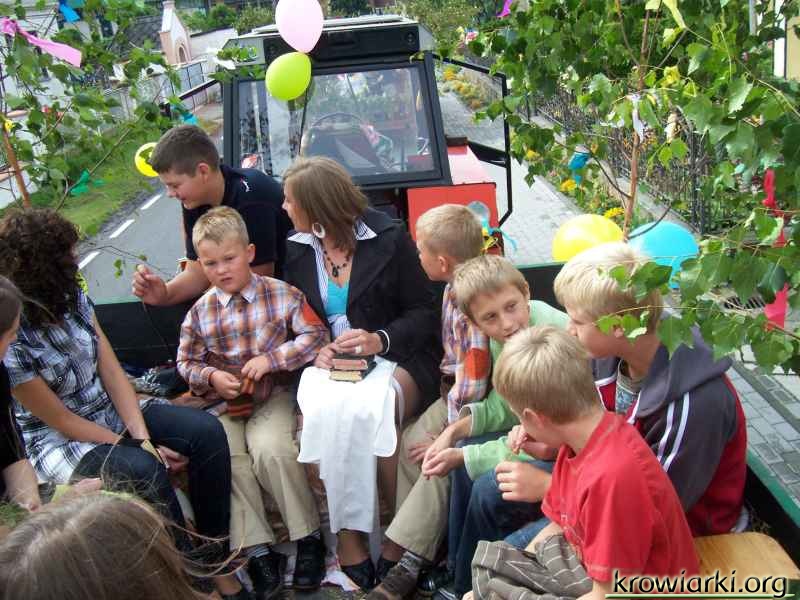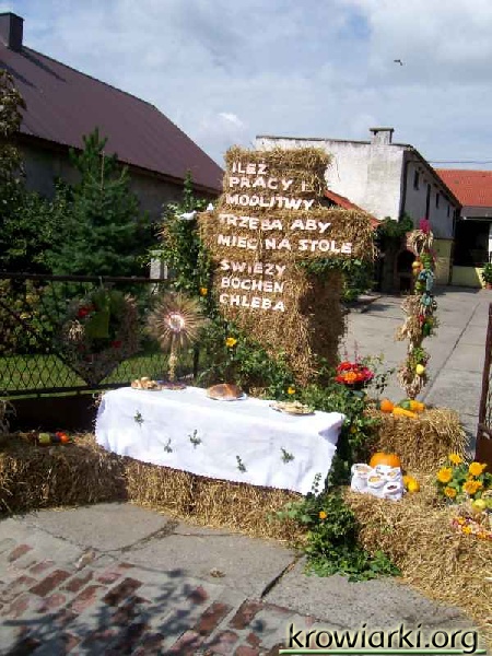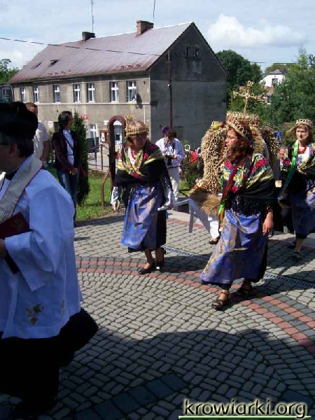 W sobotę od godz. 18.00 można było usłyszeć zachęcającą do tańca muzykę dobiegającą z Zielonego Centrum, bo tam właśnie rozpoczęły się tegoroczne dożynki wiejskie. Pierwszego dnia sołectwo wsi Krowiarki jak i pozostali organizatorzy przygotowali zabawę taneczną. W niedzielę o godz. 10.00 wyruszył spod kościoła korowód dożynkowy który jechał do jednego z dwóch ołtarzy na Amandów. Następnie wszyscy udali się na uroczystą Mszę Świętą. W kościele miejsce przed balaskami zajęły trzy korony żniwne wykonane przez kobiety z kłosów zbóż. Następnie w Zielonym Centrum przygrywała Orkiestra dęta a zaraz po niej zaprezentowały swoje umiejętności dzieci. Następnie na scenie zagościł zespół biesiadny „Hanuta” a po nim zaśpiewała Klaudia Stabik. Gdy na zegarkach ukazała się godzina 18.15 rozpoczęło się losowanie głównych nagród loterii fantowej. Skuterem odjechał mieszkaniec Dzielowa a nawigację satelitarną mieszkaniec Krowiarek Andrzej Ruchała. Po losowaniu rozpoczęła się zabawa taneczna, która dzięki kilku mieszkańcom Krowiarek została przedłużona o godzinę.
