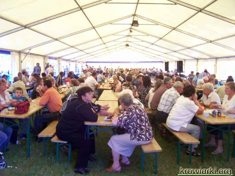 Mimo zniechęcającej pogody w pierwszy dzień dożynek jak i trwającego festynu w Raciborzu ludzi w Krowiarkach nie zabrakło.