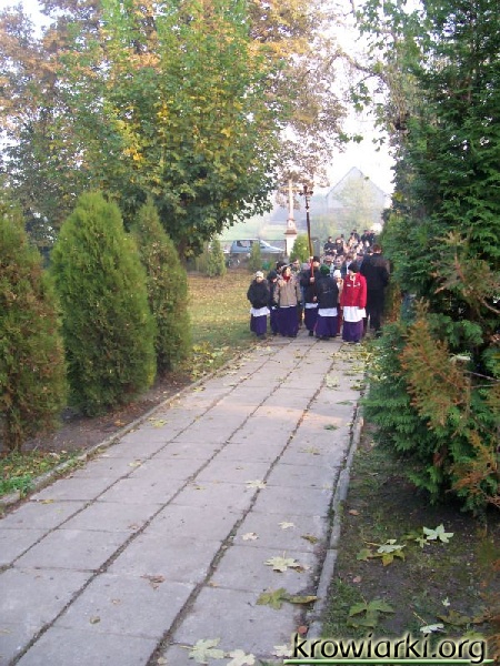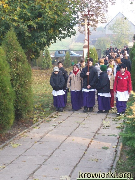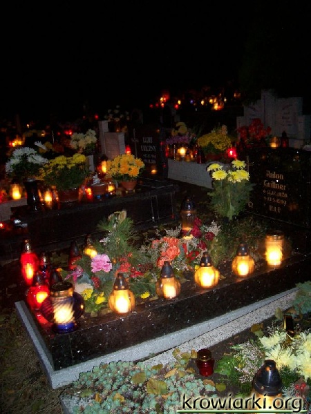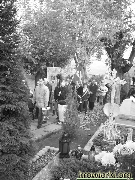 Nasza tradycja nakazuje aby odwiedzić w te dni groby naszych bliskich, złożyć kwiaty i wieńce a także zapalić znicz- symbol pamięci. Na cmentarzu w Krowiarkach zgromadziło się wiele osób. Jedni przybyli odwiedzić swoich bliskich z okolicy inni z daleka. Jak co roku o godzinie 14.00 odbyło się nabożeństwo z procesją na cmentarz do czterech ołtarzy której przewodniczył proboszcz Piotr Popanda.
